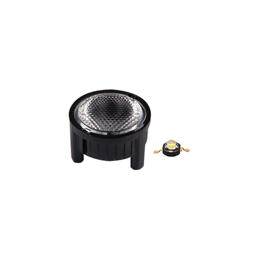 Одиночная линза со съемным холдером черного цвета для мощного светодиода Emitter.Угол обзора: вертикальный 60°, прозрачная микропризма. Материал PMMA. Диаметр 23 мм, высота 14.1 мм.