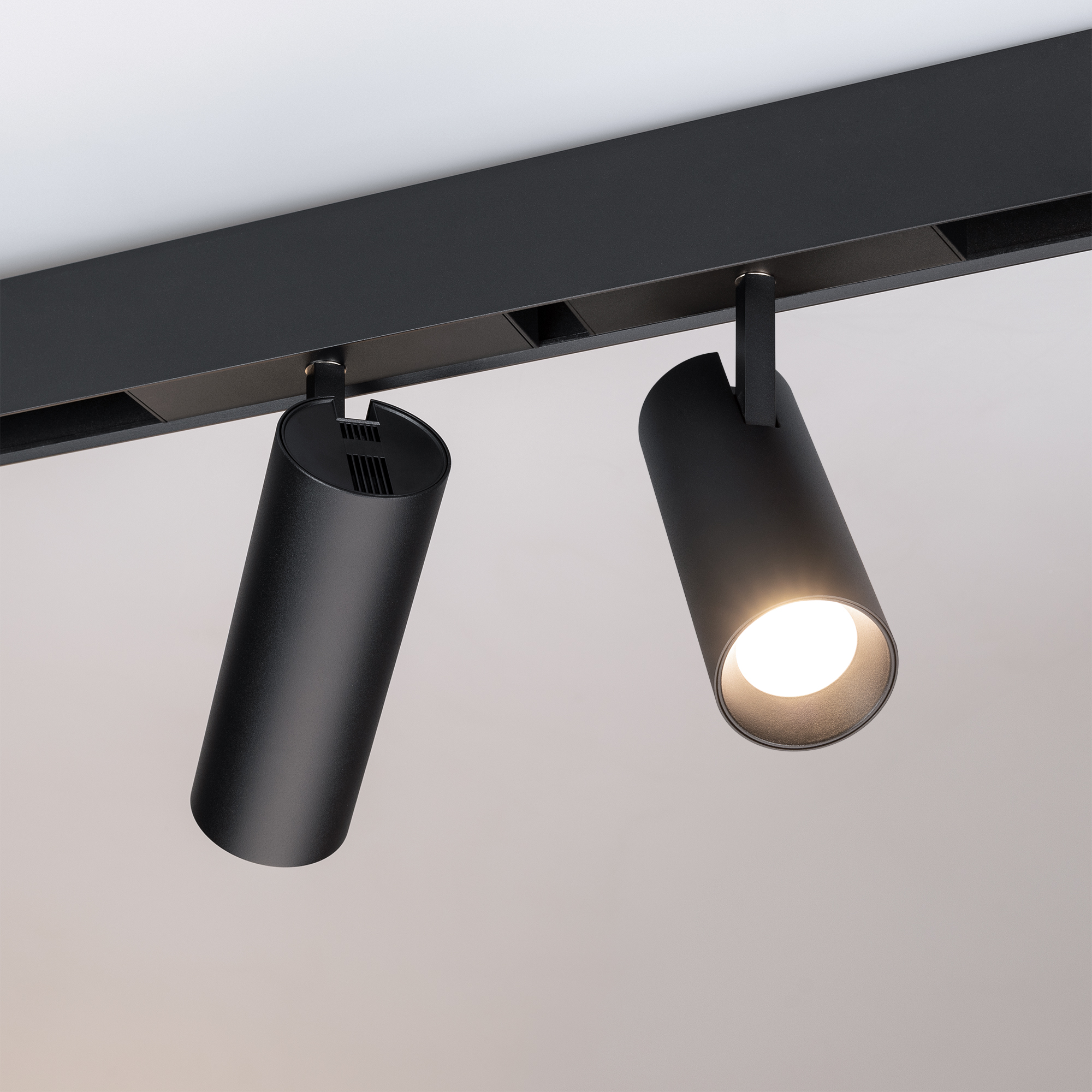Поворотный светодиодный светильник MAG-SPOT-45-R65-18W Day4000 (BK, 36 deg, 24V, DALI) мощностью 18 Вт для магнитных треков MAG-45 с управлением DALI. Узкий угол излучения 36° для создания акцентного освещения. Дневной белый цвет свечения (4000 К), световой поток 1150 лм и высокий индекс цветопередачи CRI>90 обеспечивают качественное освещение с точной передачей цветовых оттенков. Световой модуль светильника поворачивается на 350° и отклоняется относительно горизонтали на 90°, что позволяет за секунды менять световые акценты. Есть возможность управлять яркостью по протоколу DALI. У светильника безопасное напряжение 24 В и быстрая установка в шинопровод с помощью магнитов. Драйвер для подключения поставляется отдельно.
