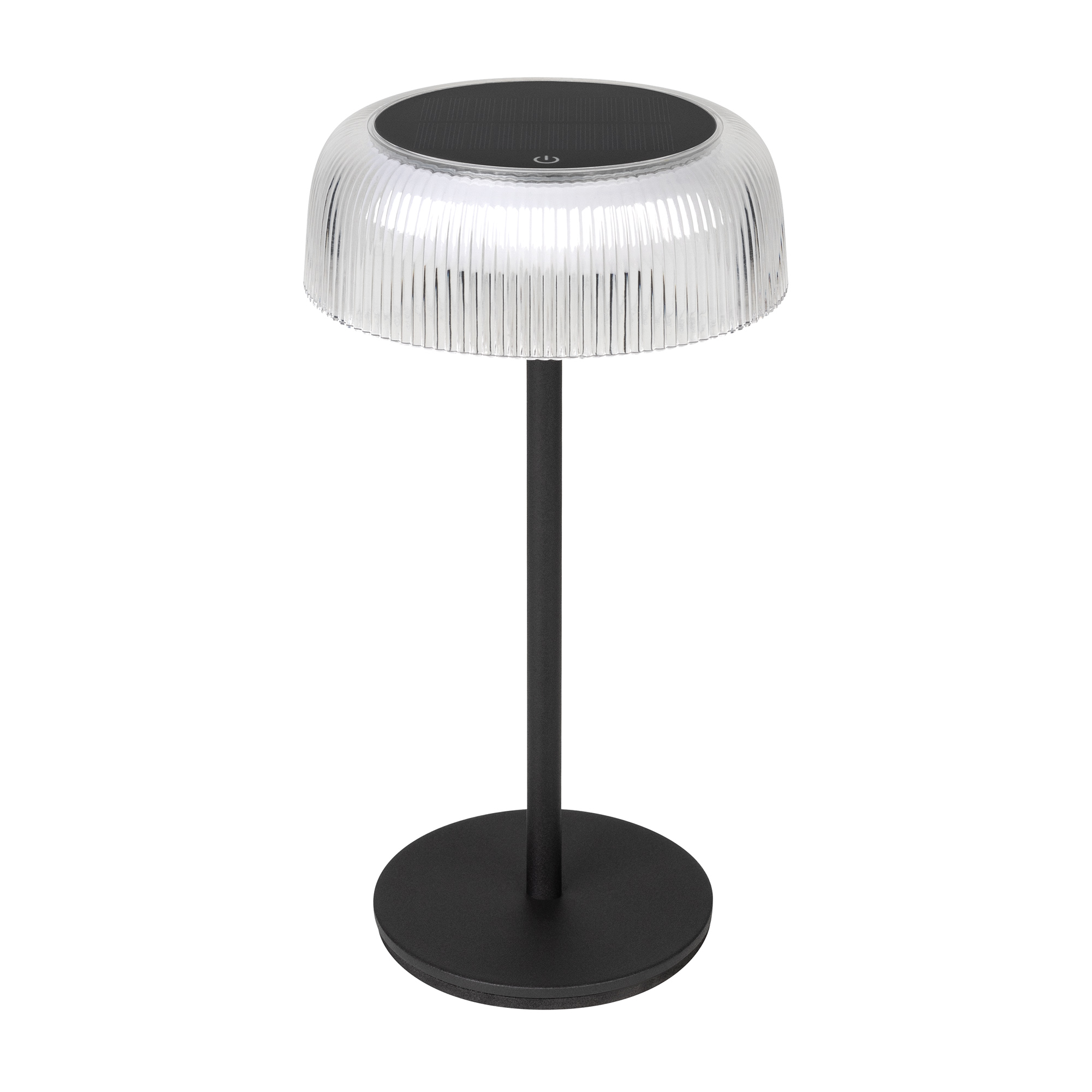 Настольный светильник со встроенным аккумулятором мощностью 4.7Вт, черный металлический корпус. Цвет теплый белый 2700К, св.поток 114 лм, CRI(Ra)>85, угол 130°. Размер ø151x270мм, диаметр основания Ø110. IP54. Тип встроенного аккумулятора 2000мАч, напряжение батареи DC3.7V. Солнечная батарея 0,9 Вт