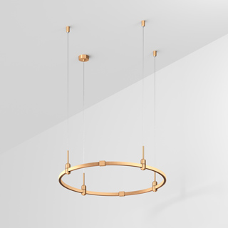 Подвесная конструкция APRIORI, форма круг. В комплекте треки с аксессуарами и гибкими подвесами длиной 1500мм Размер: диаметр 800мм, высота 22мм. Монтируется подвесным способом. Шинопровод рассчитан на работу с безопасным напряжением DC48В. Изготавливается из алюминия, анодированного в цвет светлое золото. Светильники и источники питания приобретаются отдельно.